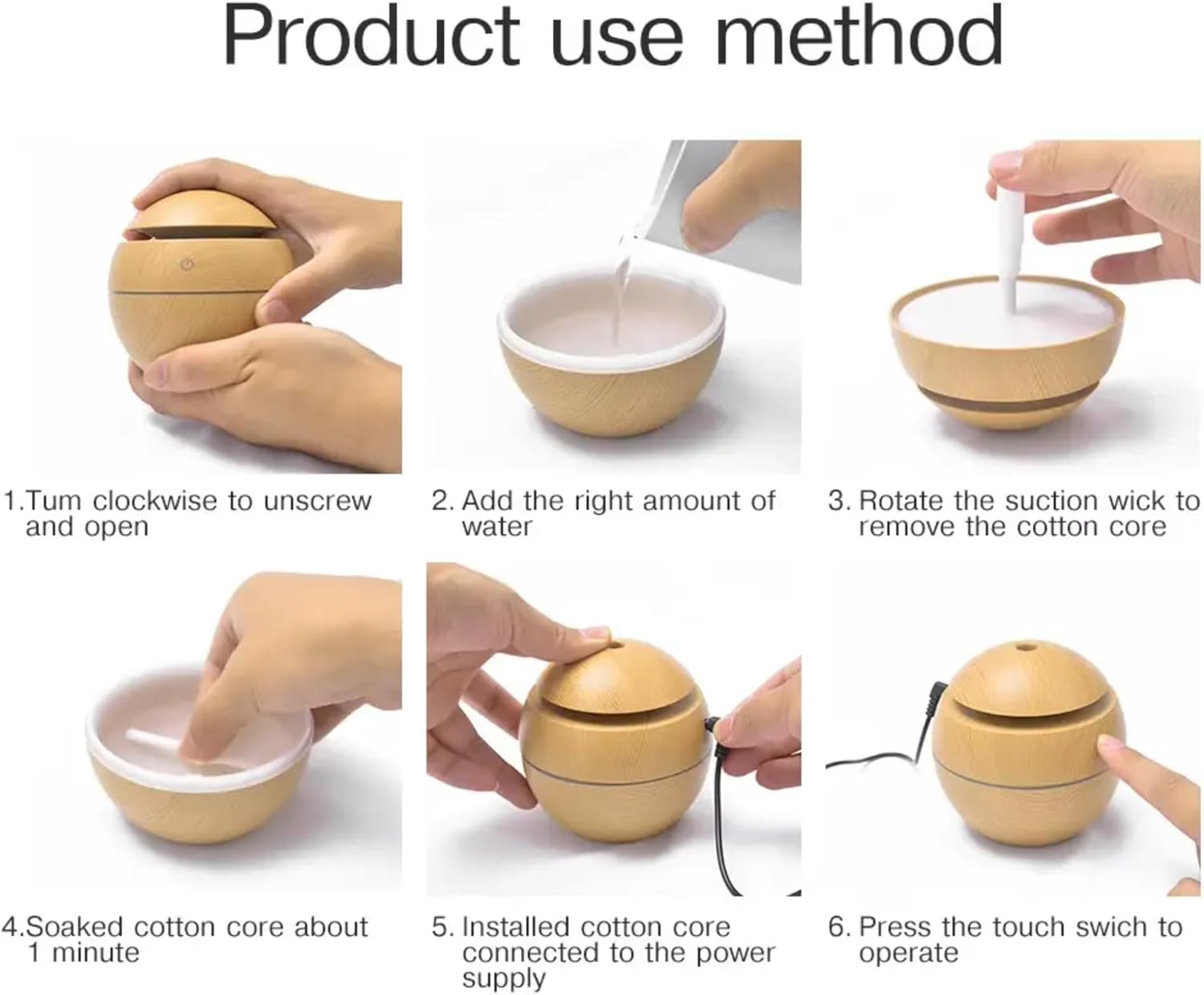 - 🧘 Compact, Stylish & Easy to Use – 130ml capacity lasts up to 10 hours. Sleek wood-grain design complements any décor. One-touch buttons for mist and light control.
