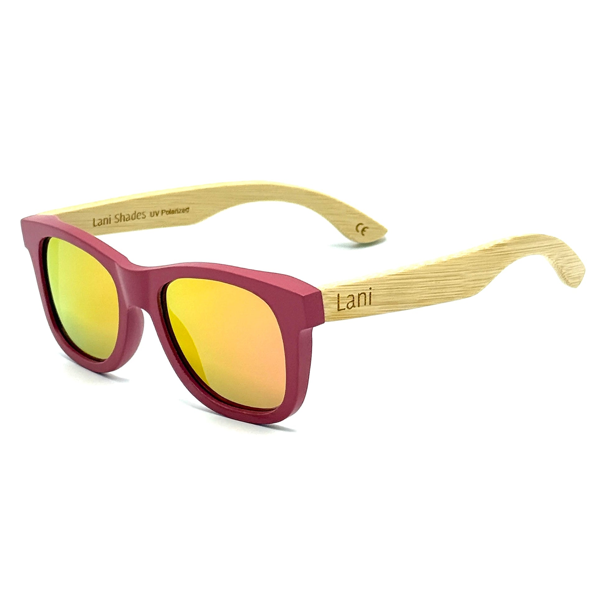 Protect your eyes in style with the Aina Ono polarized sustainable bamboo wood floating sunglasses by Lani Shades. The Lani Shades Aina Ono is an all bamboo Eddie Style for men and women featuring natural bamboo arms and bamboo fronts that are durably dyed Ono, the color of something sweet.