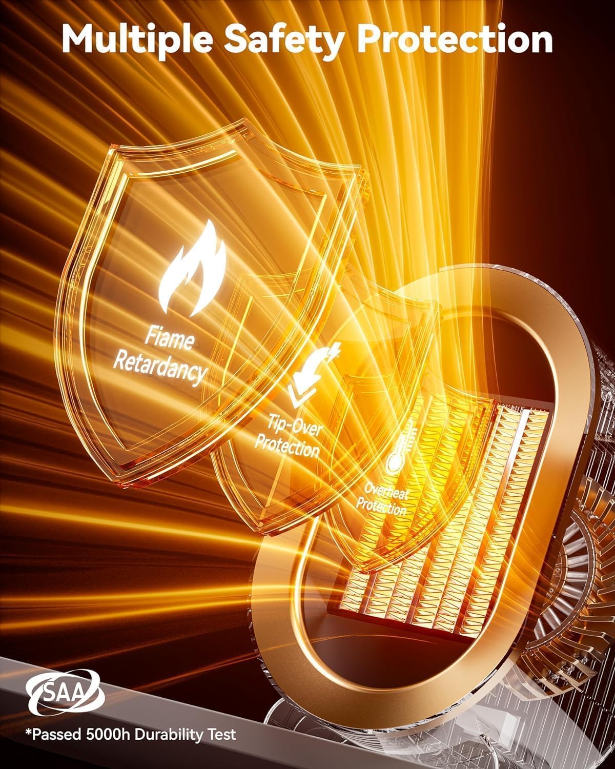 - SAFETY TIPS: Overheat Protection: If the heater overheats, it will blow cold air and turn off. Let it cool for 10 minutes before restarting. Tip-Over Protection: The heater will automatically power off if tilted or knocked over. Straighten it and restart for safe use.