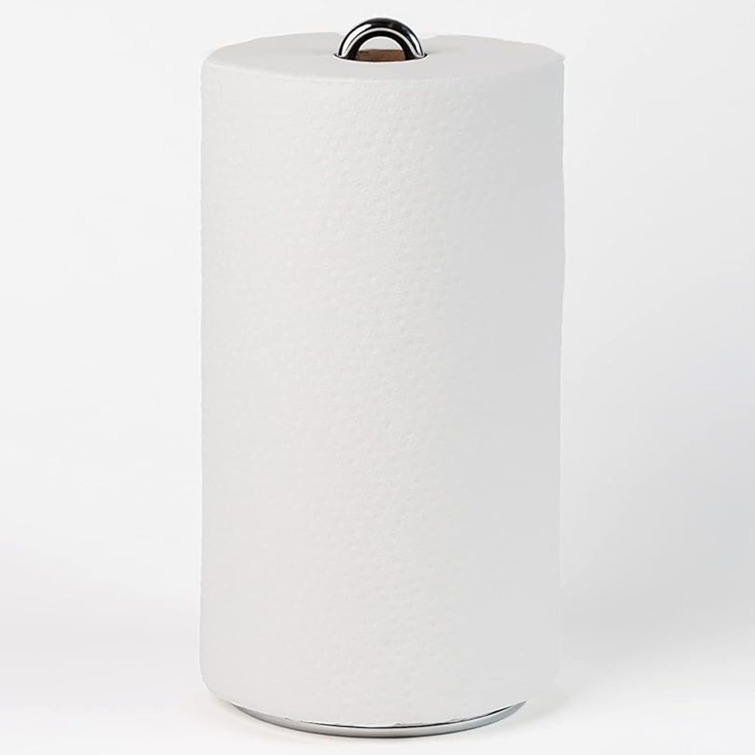 - STYLISH COUNTERTOP ACCESSORY: With a minimalist design and contemporary finishes, this paper towel holder will look beautiful in any kitchen. The compact holder will take up little space on your countertop or dining table, leaving more space for food, décor, or storage items. The circular base does not lean or tip, making it easy to tear off a paper towel when you need it.